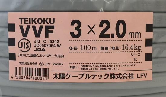 太陽ケーブルテック VVF 電線 ケーブル 3×2.0mm 2.0-3c LFV 条長:100m アウトレット品アウトレット品 ※北海道、沖縄、離島発送不可